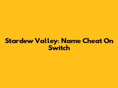 Stardew Valley: Name Cheat On Switch