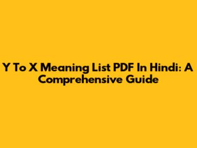 Y To X Meaning List PDF In Hindi: A Comprehensive Guide