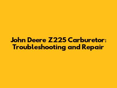 Understanding Your John Deere Z225 Carburetor