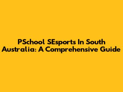 PSchool SEsports In South Australia: A Comprehensive Guide