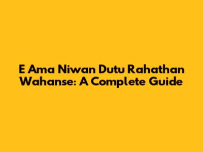 E Ama Niwan Dutu Rahathan Wahanse: A Complete Guide