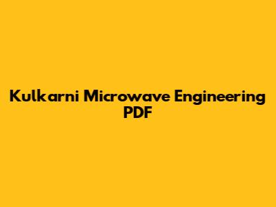 Where to Find the Kulkarni Microwave Engineering PDF