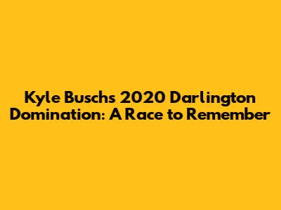 Hey race fans! Let's rewind the clock and dive deep into one of the most talked-about races of the 2020 NASCAR season: Kyle Busch's performance at Darlington Raceway. This wasn't just any race; it was a nail-biting showdown at the Track Too Tough to Tame, and trust me, it had all the drama, strategy, and edge-of-your-seat moments that we love about NASCAR. In this article, we'll break down everything from Kyle Busch's qualifying position to the final checkered flag, providing insights into his race strategy, the key moments that defined the event, and the impact this race had on his overall season. So, buckle up, grab your favorite snack, and let's relive the excitement of Kyle Busch's 2020 Darlington race! We're going to explore how Busch, a driver known for his aggressive style, navigated the challenges of Darlington, and how he stacked up against his competitors. The race at Darlington is always a test of both driver skill and car performance. The track's unique configuration and abrasive surface demand precision and endurance. We'll be analyzing Busch's car setup, his pit crew's performance, and the crucial decisions made by his team that ultimately influenced the race's outcome. From the initial green flag to the final lap, every moment contributed to the narrative of this thrilling event. The 2020 NASCAR season was full of surprises, and Busch's race at Darlington was no exception. We will also touch on the rivalries, the mechanical issues, and the unexpected twists that kept everyone guessing until the very end. This race wasn't just a win or a loss; it was a snapshot of Busch's career, showcasing his determination, skill, and the relentless pursuit of victory that has defined him throughout his career. Get ready for a comprehensive review that will bring you right back to the heart of the action, offering a fresh perspective on this unforgettable race.