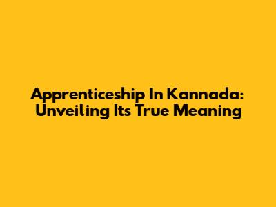 Apprenticeship In Kannada: Unveiling Its True Meaning