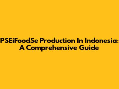 PSEiFoodSe Production In Indonesia: A Comprehensive Guide