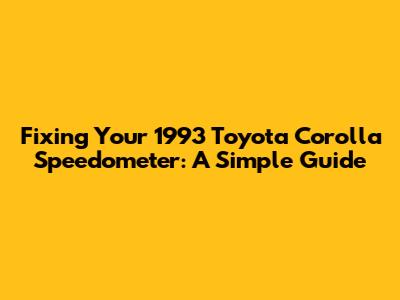 Fixing Your 1993 Toyota Corolla Speedometer: A Simple Guide