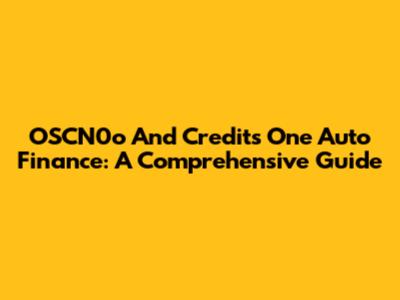 OSCN0o And Credits One Auto Finance: A Comprehensive Guide