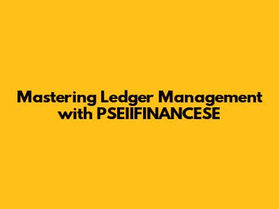 Best Practices for Effective Ledger Management with PSEIIFINANCESE