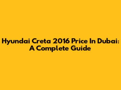 Hyundai Creta 2016 Price In Dubai: A Complete Guide