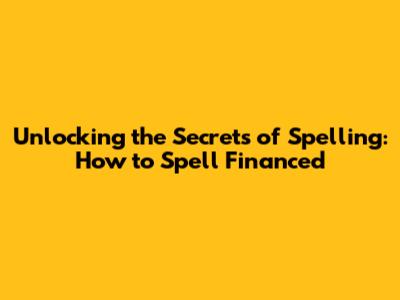 Unlocking the Secrets of Spelling: How to Spell 'Financed'