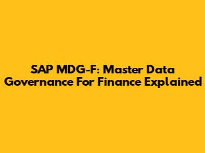 SAP MDG-F: Master Data Governance For Finance Explained