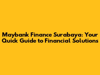 Hey guys! Ever found yourself in need of some extra financial assistance in Surabaya? Well, look no further! This article is your go-to guide for everything related to Maybank Finance Surabaya. We'll dive deep into what they offer, how they can help you, and why they're a solid choice for your financial needs. Ready to explore? Let's get started!