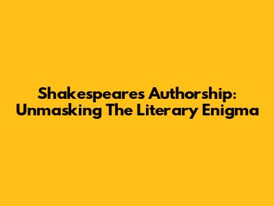 Shakespeare's Authorship: Unmasking The Literary Enigma