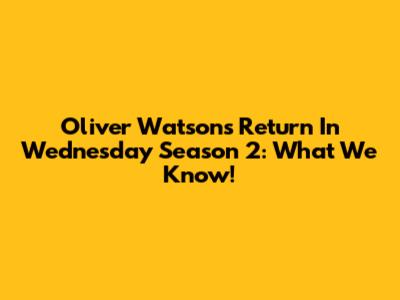 Oliver Watson's Return In Wednesday Season 2: What We Know!