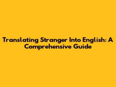 Translating 'Stranger' Into English: A Comprehensive Guide