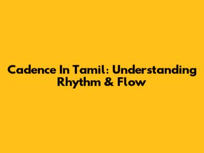 Cadence In Tamil: Understanding Rhythm & Flow