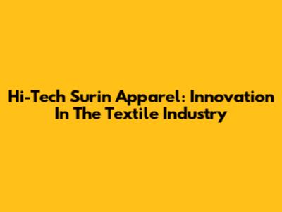 Hi-Tech Surin Apparel: Innovation In The Textile Industry