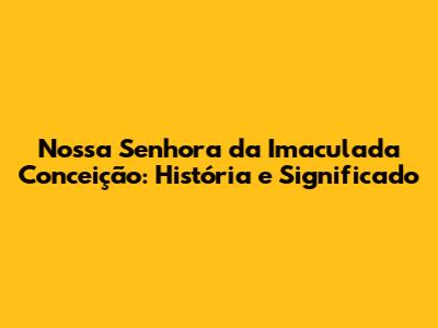 Nossa Senhora Da Imaculada Conceição: História E Significado