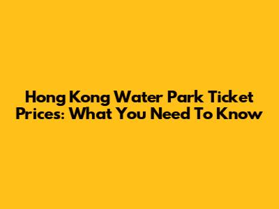 Hong Kong Water Park Ticket Prices: What You Need To Know