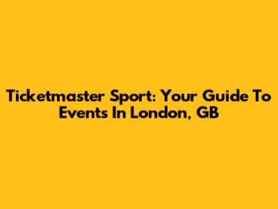 Ticketmaster Sport: Your Guide To Events In London, GB