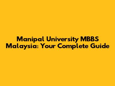Manipal University MBBS Malaysia: Your Complete Guide