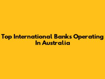 Top International Banks Operating In Australia