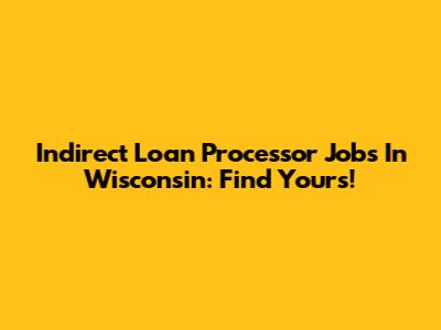 Indirect Loan Processor Jobs In Wisconsin: Find Yours!