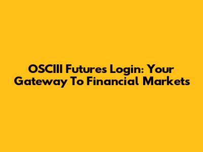 OSCIII Futures Login: Your Gateway To Financial Markets