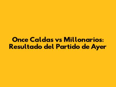 Once Caldas Vs Millonarios: Resultado Del Partido De Ayer