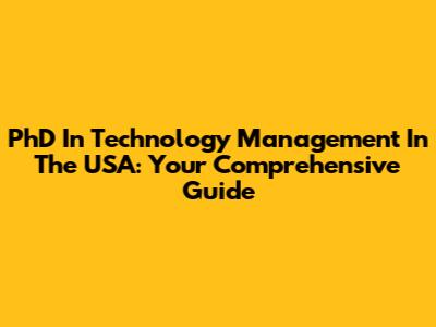 PhD In Technology Management In The USA: Your Comprehensive Guide