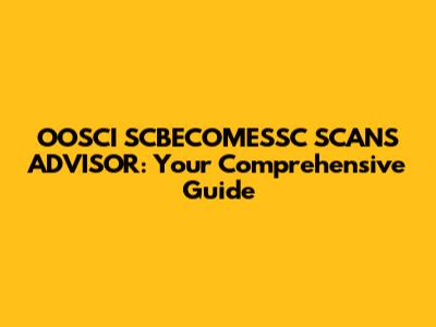 Understanding the Role of an OOSCI SCBECOMESSC SCANS ADVISOR