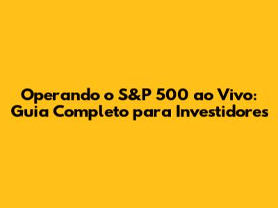 Operando O S&P 500 Ao Vivo: Guia Completo Para Investidores