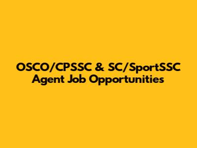 OSCO/CPSSC & SC/SportSSC Agent Job Opportunities