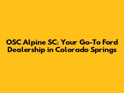 Hey guys! Are you in the market for a new Ford or need some top-notch service for your current vehicle? Look no further than OSC Alpine SC in Colorado Springs! We're your local Ford experts, and we're here to help you navigate everything from finding the perfect car to keeping it running smoothly for years to come. Whether you're a long-time Ford enthusiast or new to the brand, this article is designed to give you the lowdown on why OSC Alpine SC is the place to be for all your Ford needs in Colorado Springs. We'll dive into what makes us special, the services we offer, and why our customers keep coming back. So, buckle up and let's explore what makes OSC Alpine SC a standout choice for Ford drivers in the Colorado Springs area. We are the oscalpinesc ford colorado springs that you can rely on.