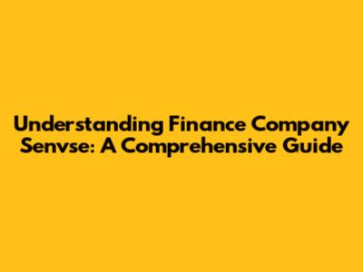 Understanding Finance Company Senvse: A Comprehensive Guide