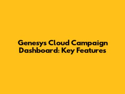 Genesys Cloud Campaign Dashboard: Key Features