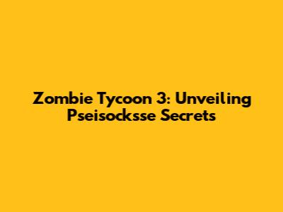 Zombie Tycoon 3: Unveiling Pseisocksse Secrets