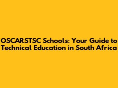 OSCARSTSC Schools: Your Guide To Technical Education In South Africa