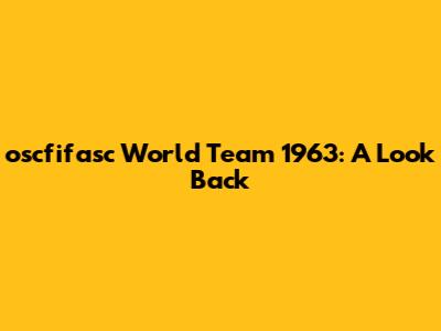 Oscfifasc World Team 1963: A Look Back