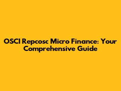 What is OSCI Repcosc Micro Finance Limited? Unveiling the Basics