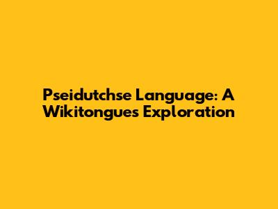 Pseidutchse Language: A Wikitongues Exploration