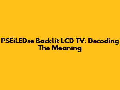 PSEiLEDse Backlit LCD TV: Decoding The Meaning