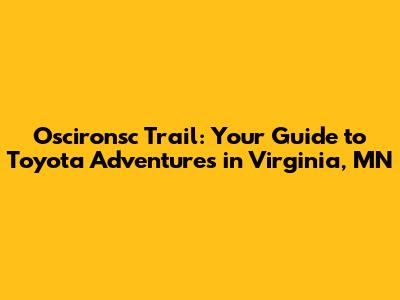 Hey guys! Ready to dive into an awesome adventure? Let's explore the Oscironsc Trail in Virginia, Minnesota, a place where your Toyota can truly shine. This guide is your ultimate companion, whether you're a seasoned off-roader or just getting started. We'll cover everything from the trail's challenges and scenic views to essential tips for a smooth and unforgettable ride. Buckle up, because we're about to hit the trail!