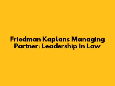 Friedman Kaplan's Managing Partner: Leadership In Law
