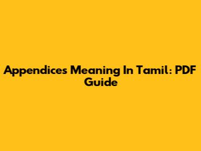 Appendices Meaning In Tamil: PDF Guide