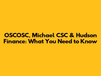 OSCOSC, Michael CSC & Hudson Finance: What You Need To Know
