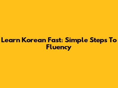 Learn Korean Fast: Simple Steps To Fluency