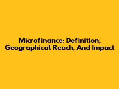 Microfinance: Definition, Geographical Reach, And Impact