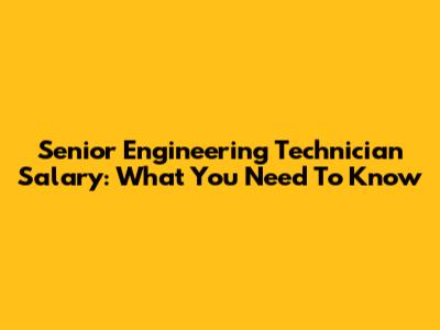 Senior Engineering Technician Salary: What You Need To Know