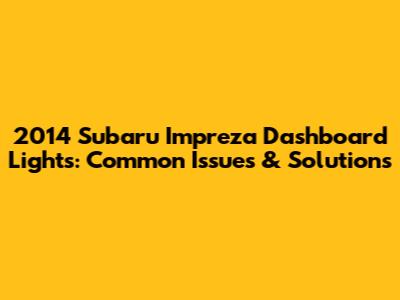 2014 Subaru Impreza Dashboard Lights: Common Issues & Solutions